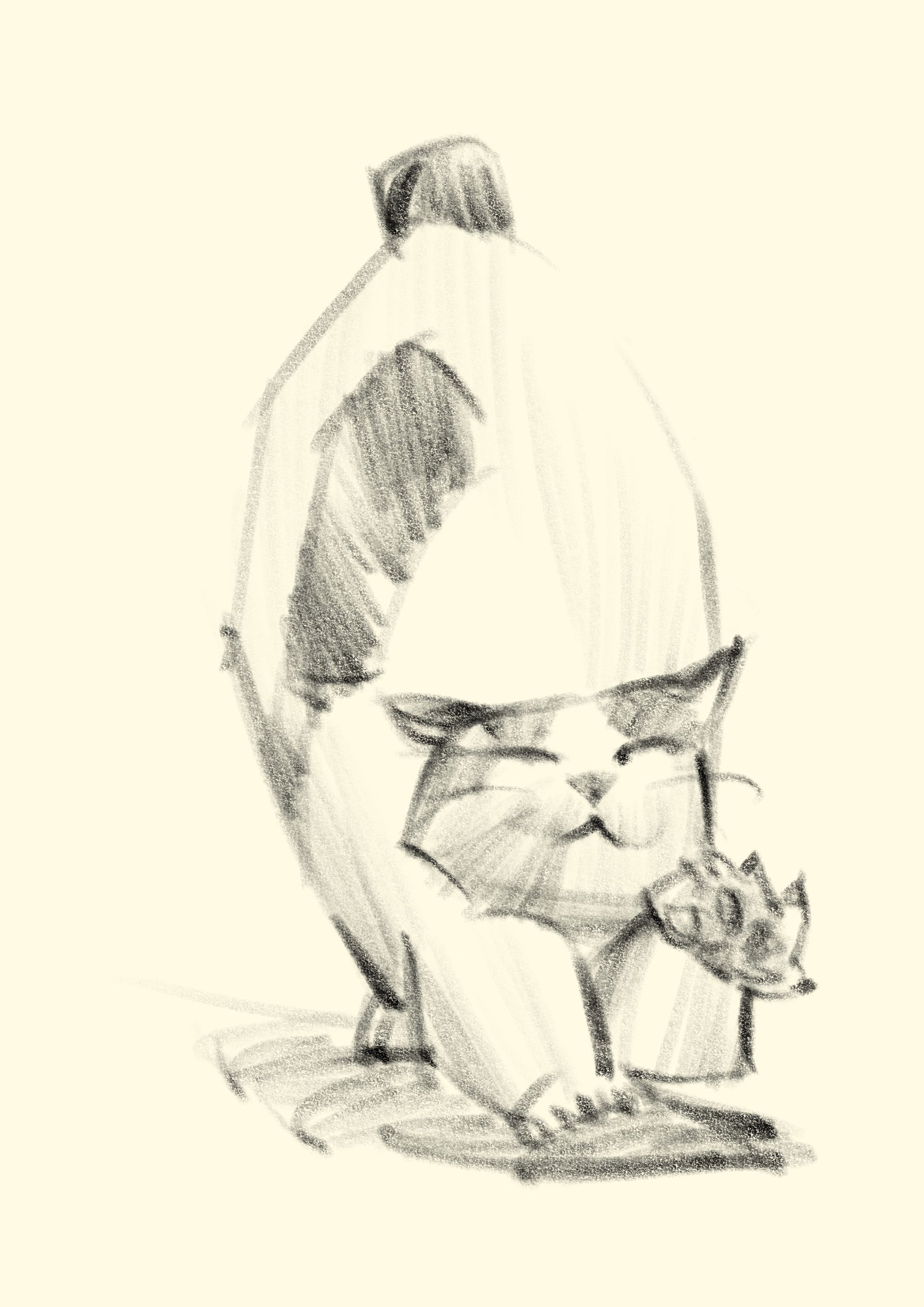 "Ah, this cat is stretching like a taut bow."