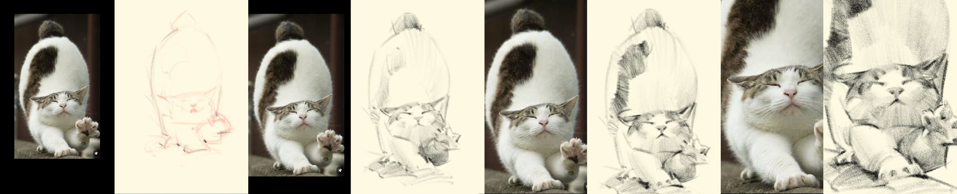 Step 3. Details (Finally!) Only after the structure is solid do they zoom in to draw the eyes, nose, and fur.