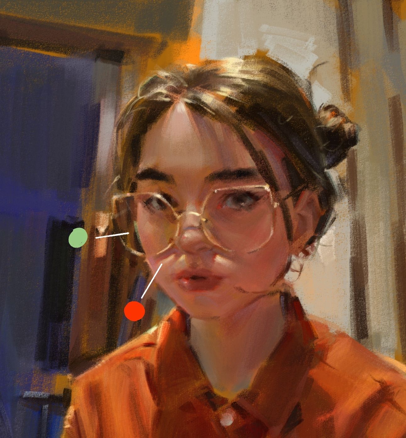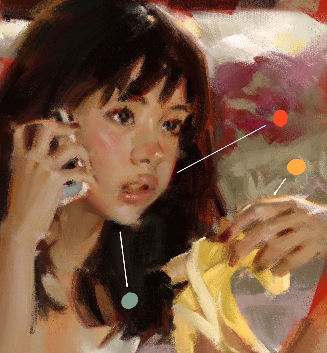 This small stroke adds life to the face and creates a focal point of warmth amid otherwise complex color interactions.