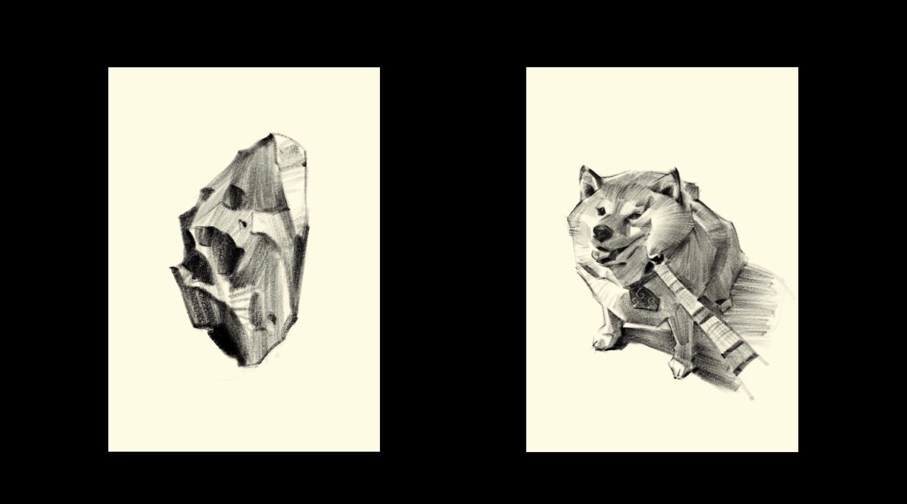 The direction where you can push the blade most smoothly is the main "grain" that defines the form. When you draw long lines following this grain, a single line acts like a rope firmly binding the shape from start to finish, creating massive volume.