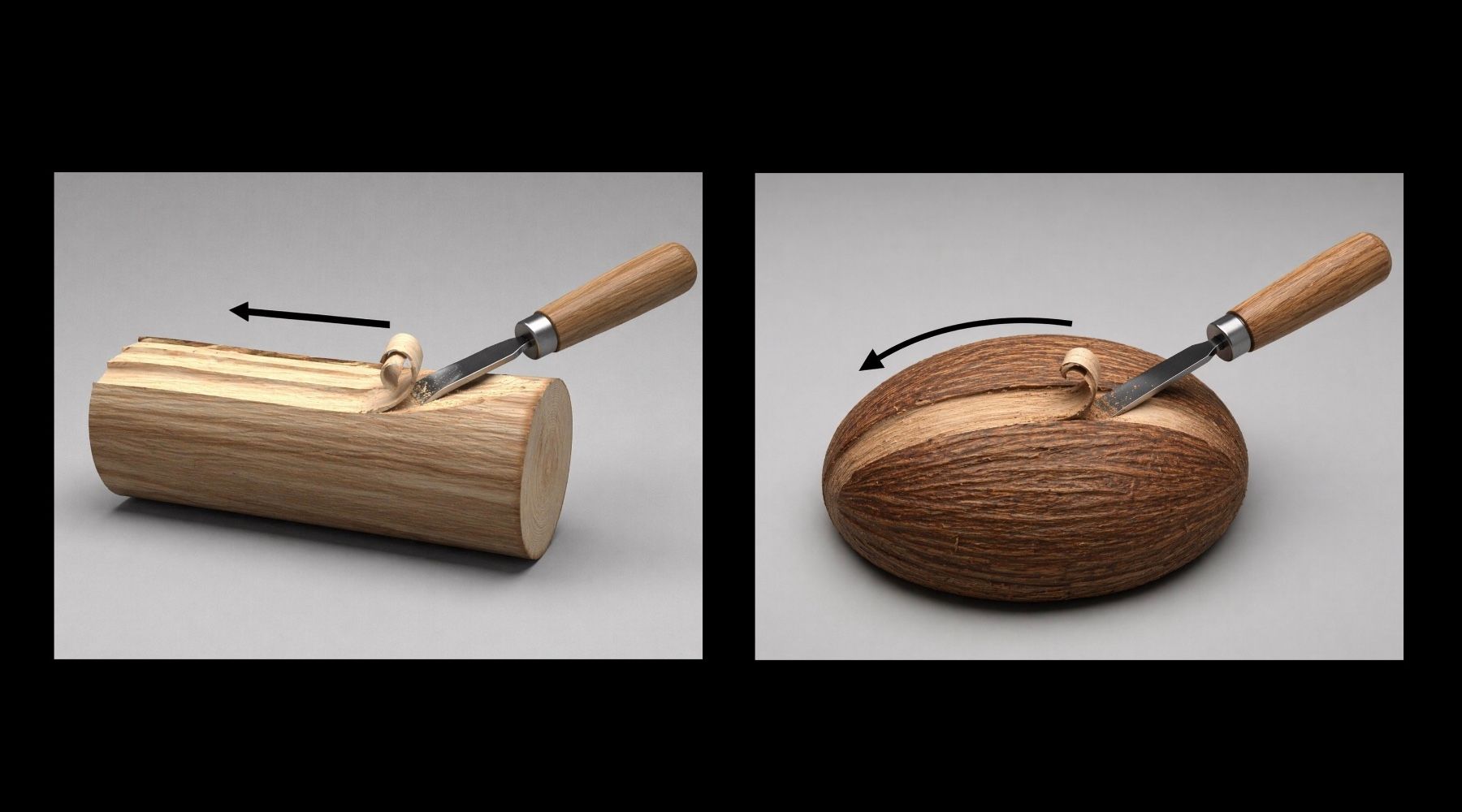The smoothest path for a carving knife becomes the defining "grain" of the form.